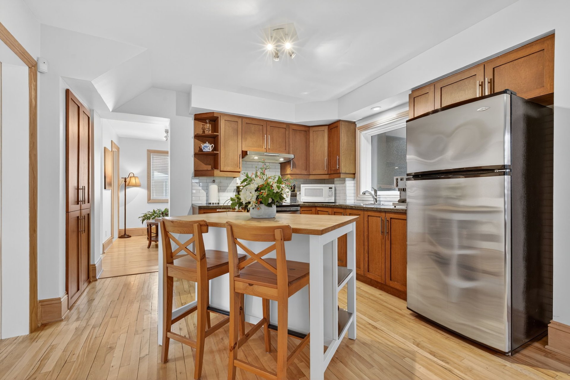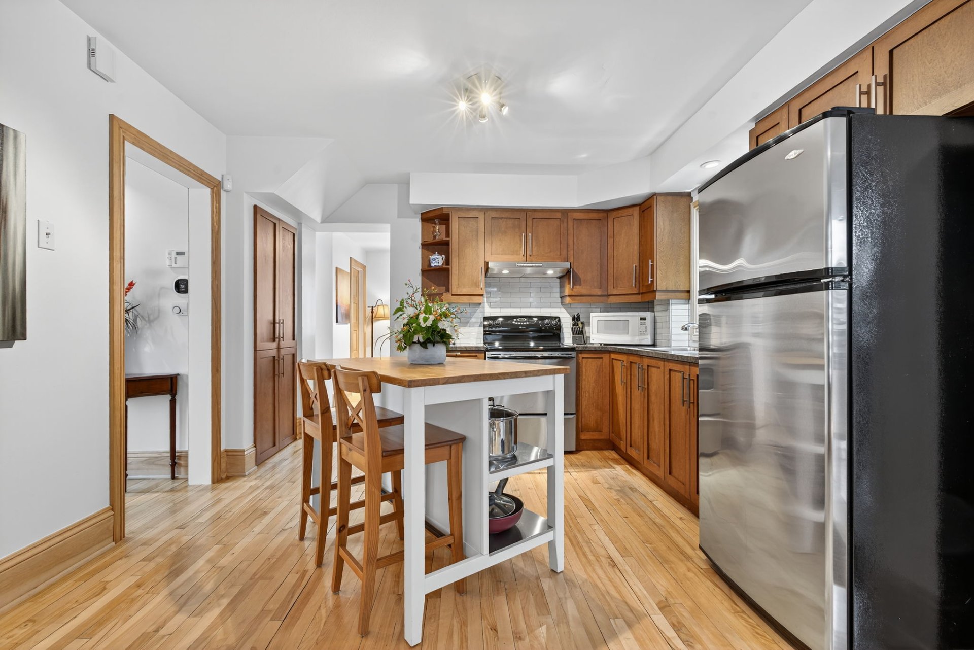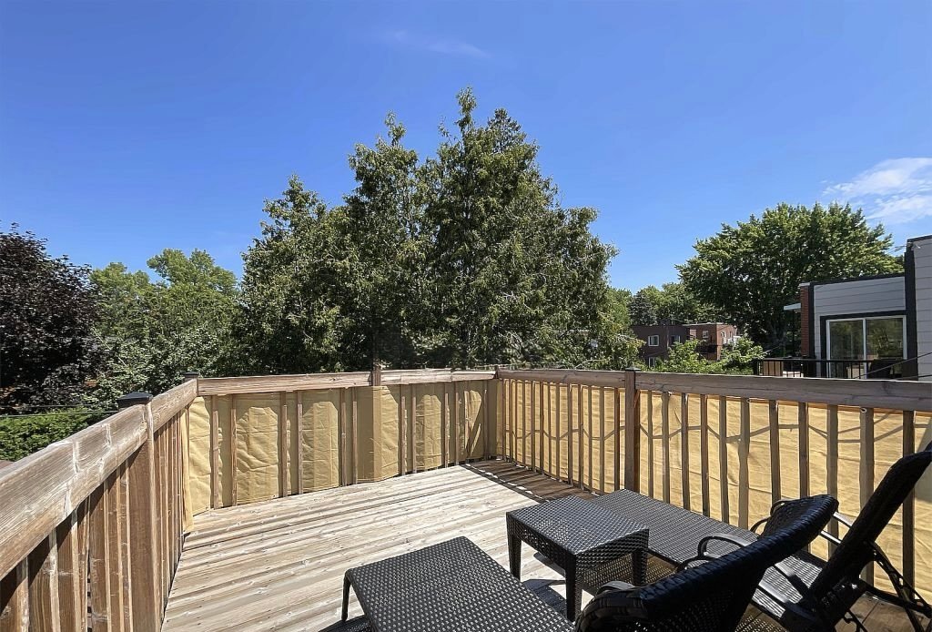 Situated in the sought-after city of Montreal, this very large, impeccably maintained residence offers 1,800 sq. ft. of living space on 2 floors, plus 950 sq. ft. of finished basement, providing a refined and functional living environment. Featuring 4 bedrooms (1 in the basement), 2 bathrooms, and 1 powder room, it combines comfort and practicality. Enjoy 2 stacked terrace balconies, a spa and relaxing sauna, 3 parking spaces, a well-kept backyard, and generous storage. A rare opportunity in a prime location with Flexible occupancy!