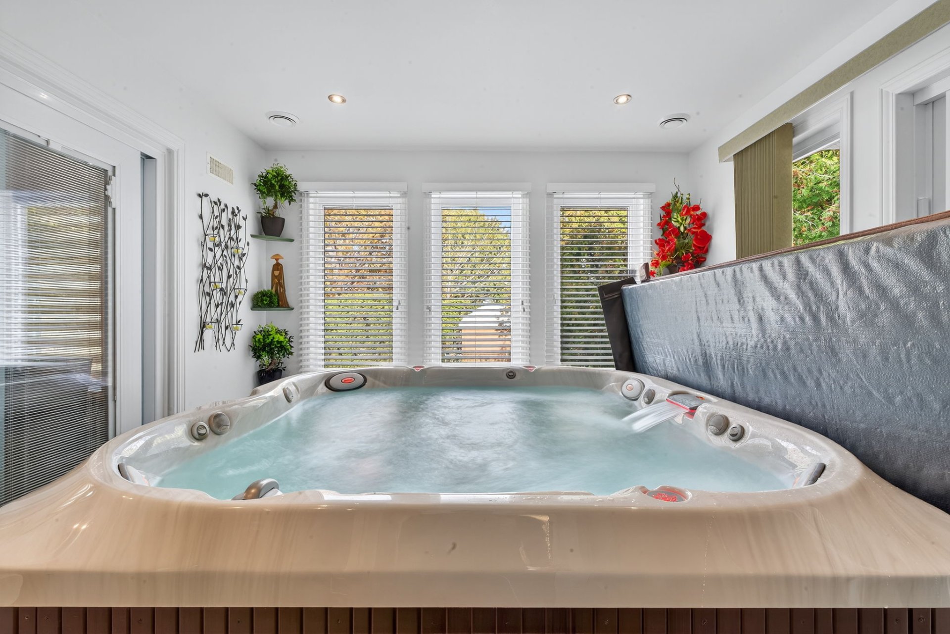 inclusions: Blinds, curtains, light fixtures, spa, sauna, outdoor tables and chairs.