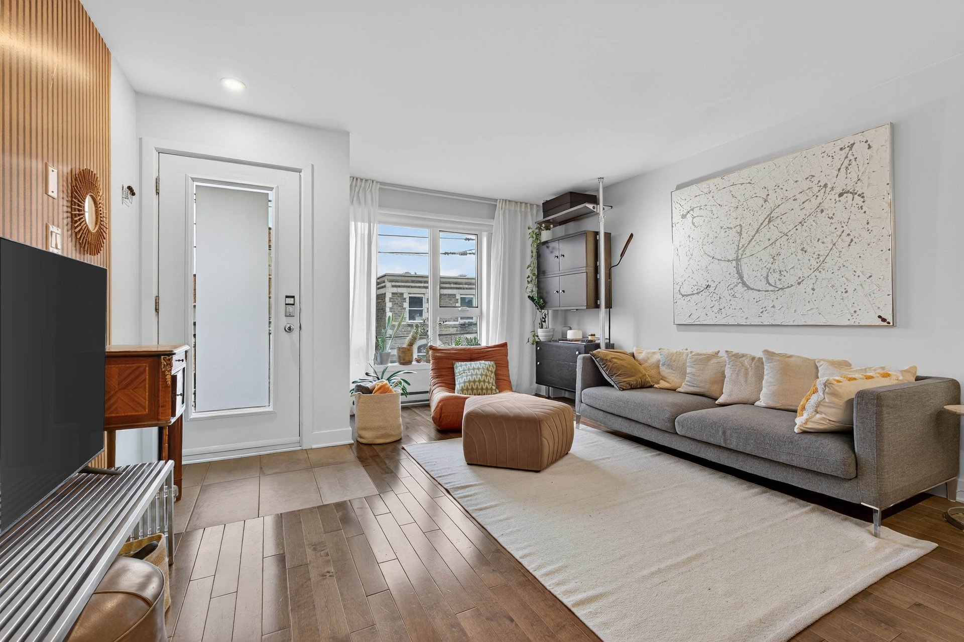 Stylish 1-bedroom condo + office nook in the heart of Verdun! This bright 733 sq.ft. unit offers a modern open-concept layout, a sleek kitchen with quartz counters, a spacious bathroom with separate tub and shower, hardwood floors, and a large walk-in closet. Enjoy sunrise in the bedroom, sunset in the living area, and a generous rear balcony with storage. Perfect location--just 6 minutes to LaSalle metro, steps to Wellington Street, the waterfront, parks, bike paths, cafés, and shops. Quiet, well-managed building with low condo fees and easy street parking. Ideal for living or investing! Flexible Occupancy !