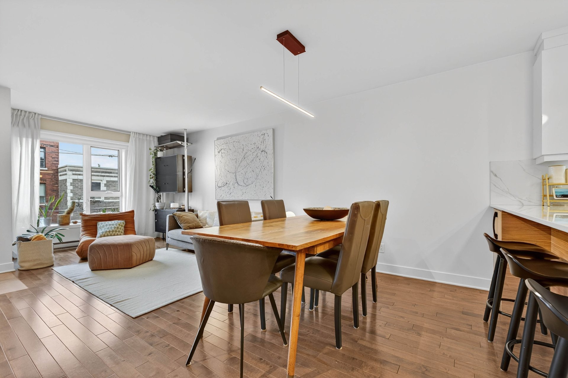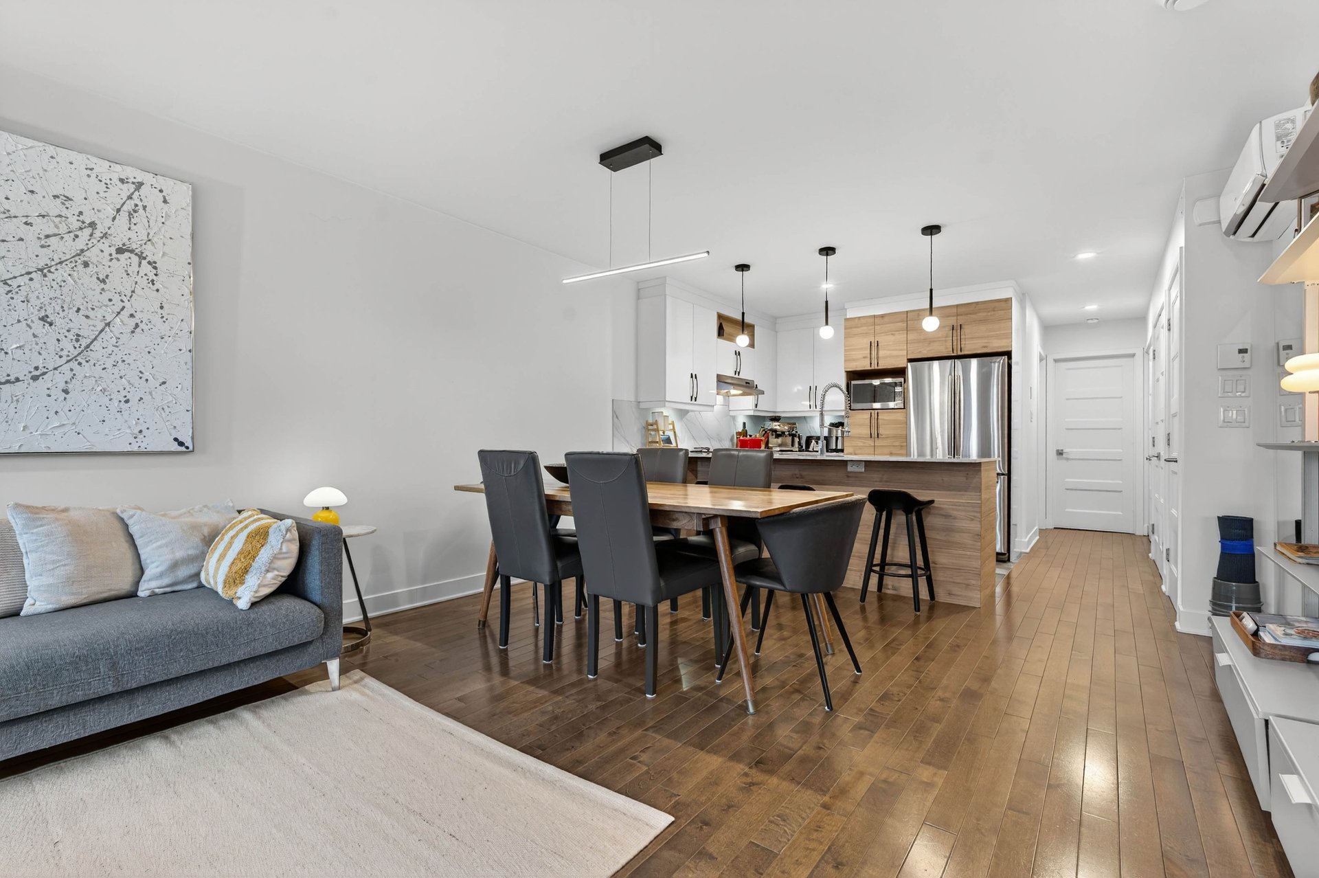 Bright open-concept living, dining, and kitchen area