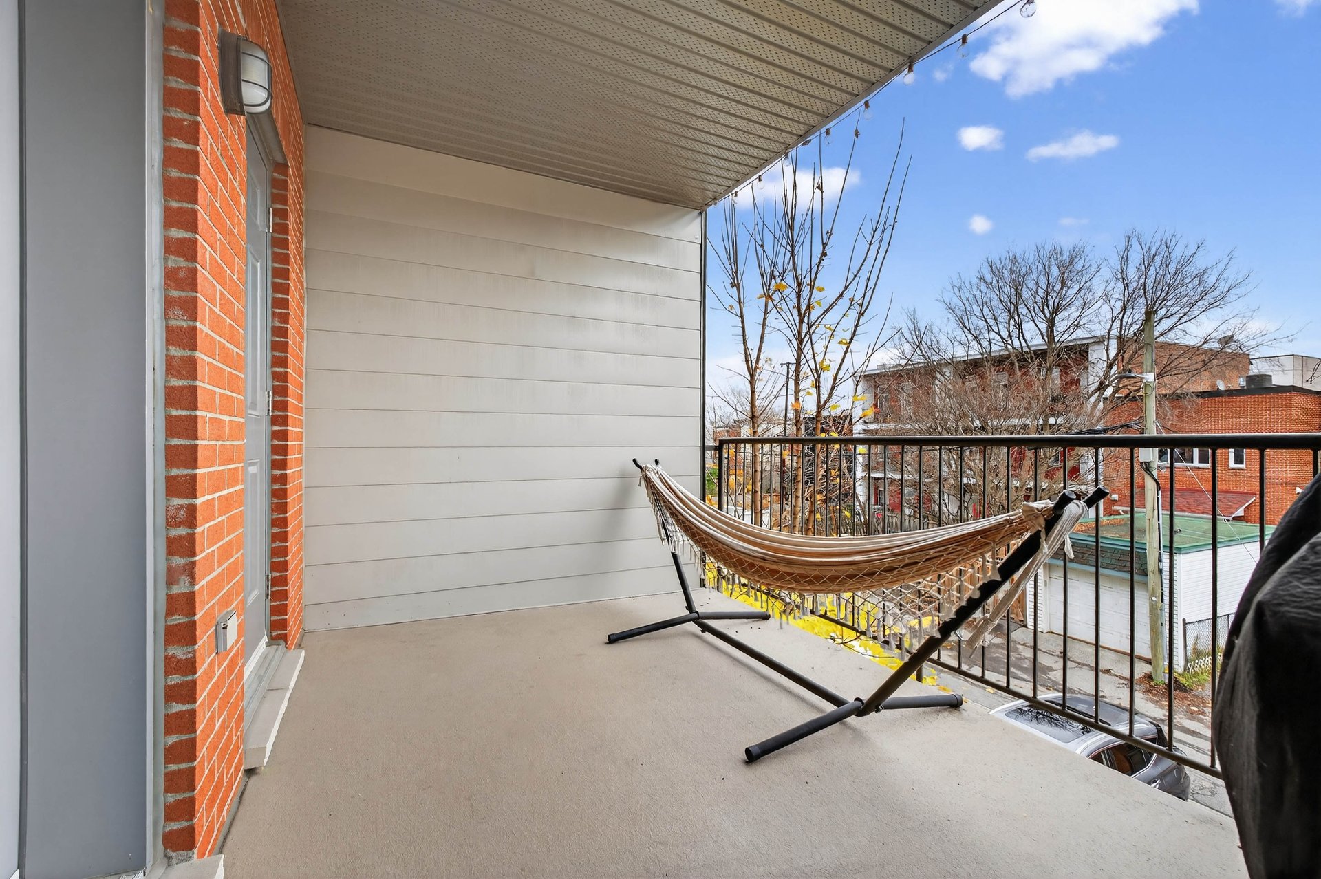 Large rear balcony (8 × 13 ft) with built-in storage