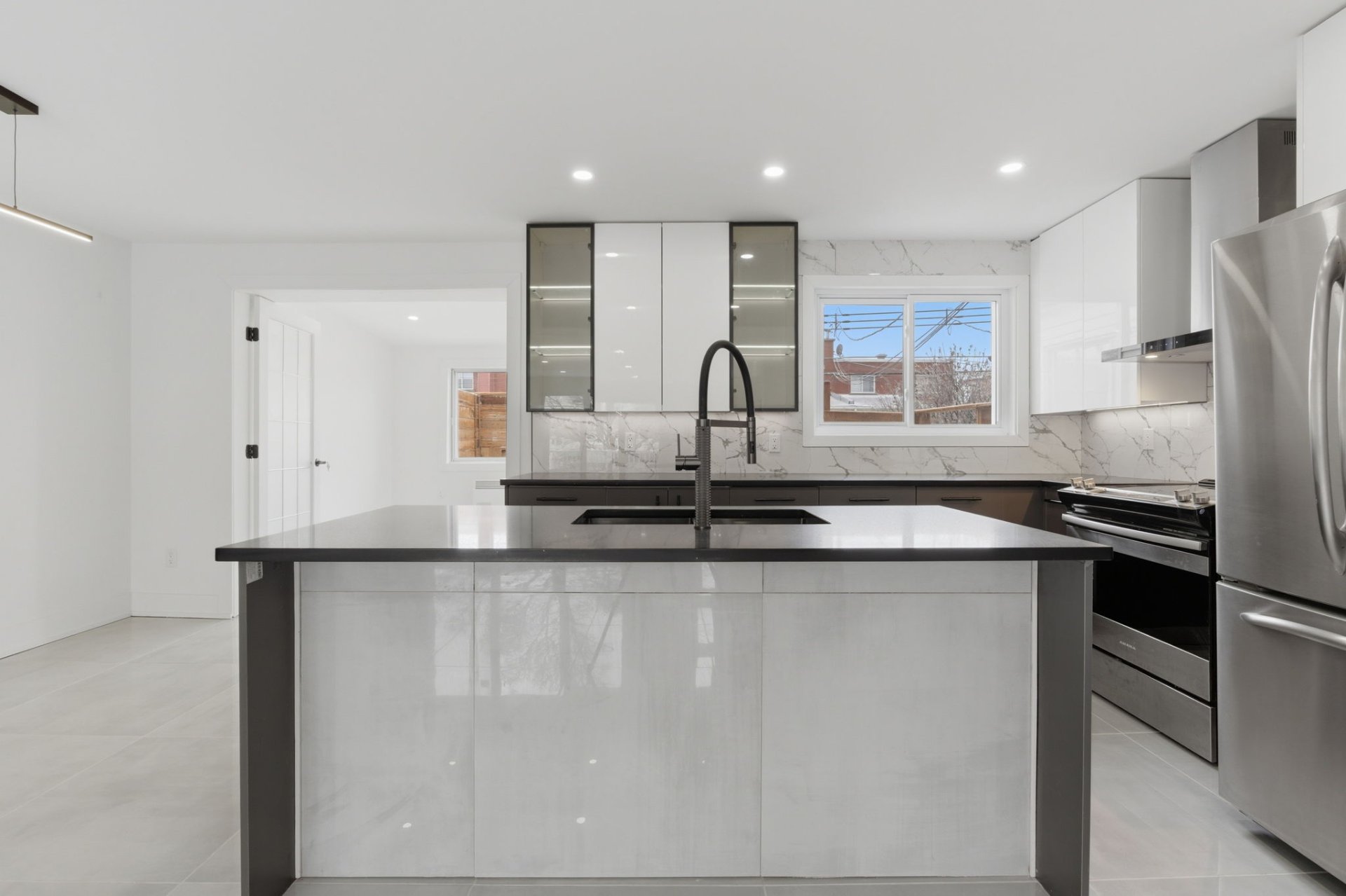 Maison de ville magnifiquement rénovée à Montréal-Nord. Belle et spacieuse propriété offrant 4 chambres à coucher (3 au 2e étage et 1 au sous-sol), 2 salles de bains complètes et 1 salle d'eau. Le sous-sol dispose d'une entrée indépendante et de sa propre cuisine, offrant un excellent potentiel de revenu. Espaces de vie lumineux et aménagement fonctionnel, idéal pour les familles. 2 entrées de stationnement avec prises électriques pour plus de commodité. Située près des parcs, des écoles, du transport en commun et avec un accès rapide aux axes routiers majeurs, dont l'A-25 et le boulevard Henri-Bourassa. Une occasion à ne pas manquer!