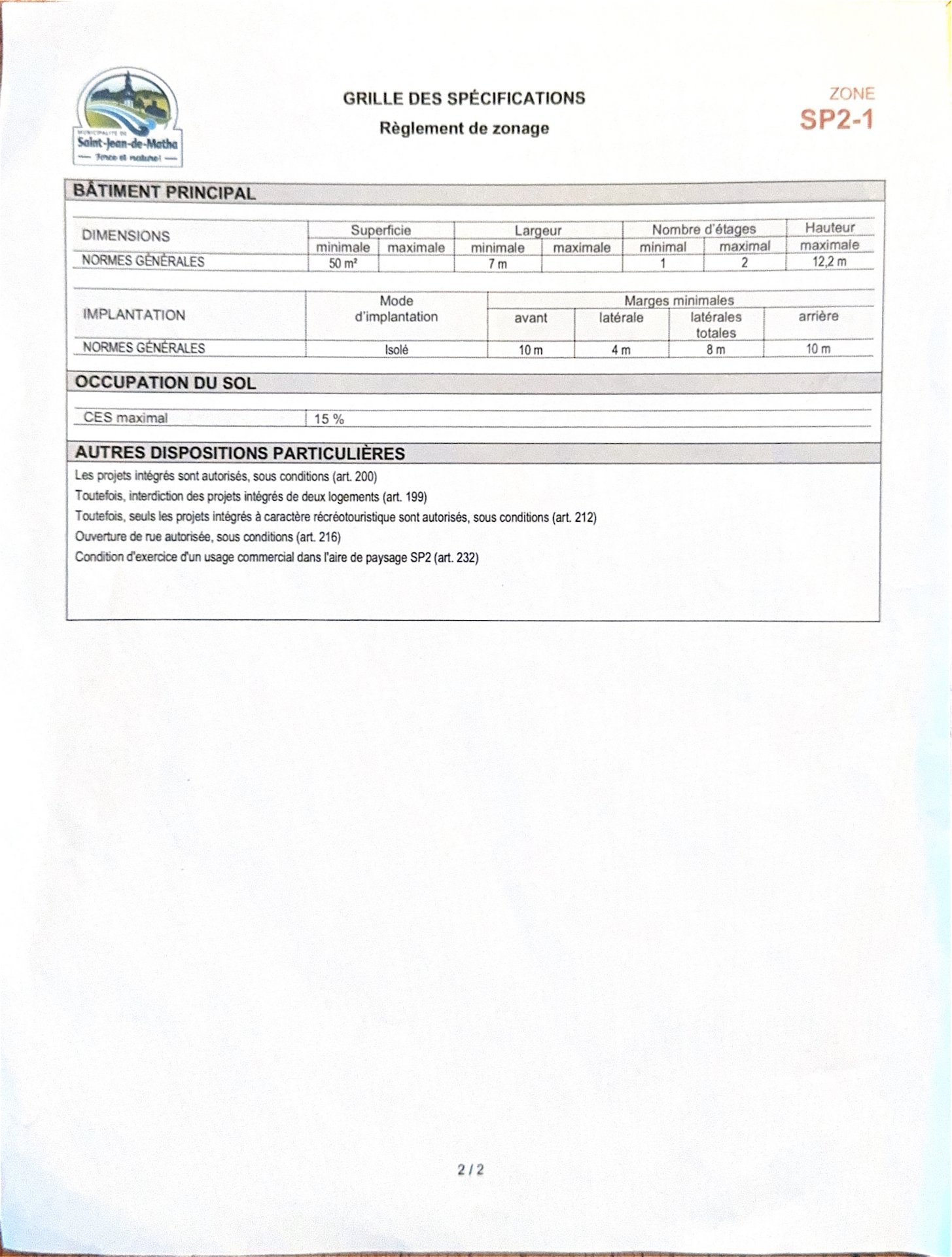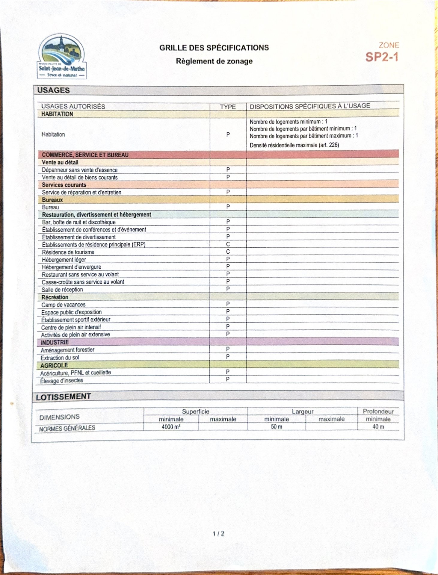 avec un potentiel de revenus polyvalent. Zoné blanc SP2-1