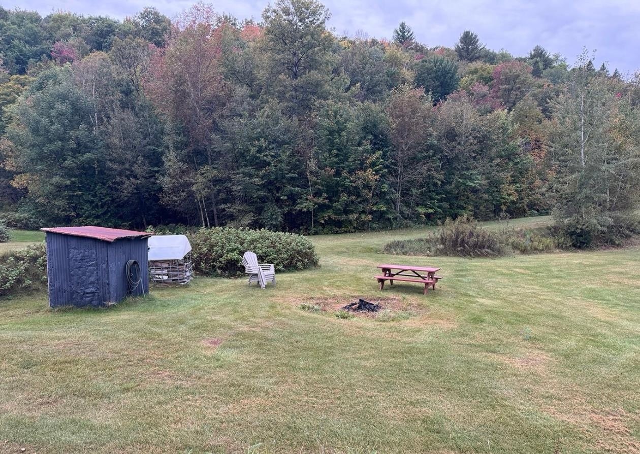 bois. Comprend des granges et une piscine hors terre.