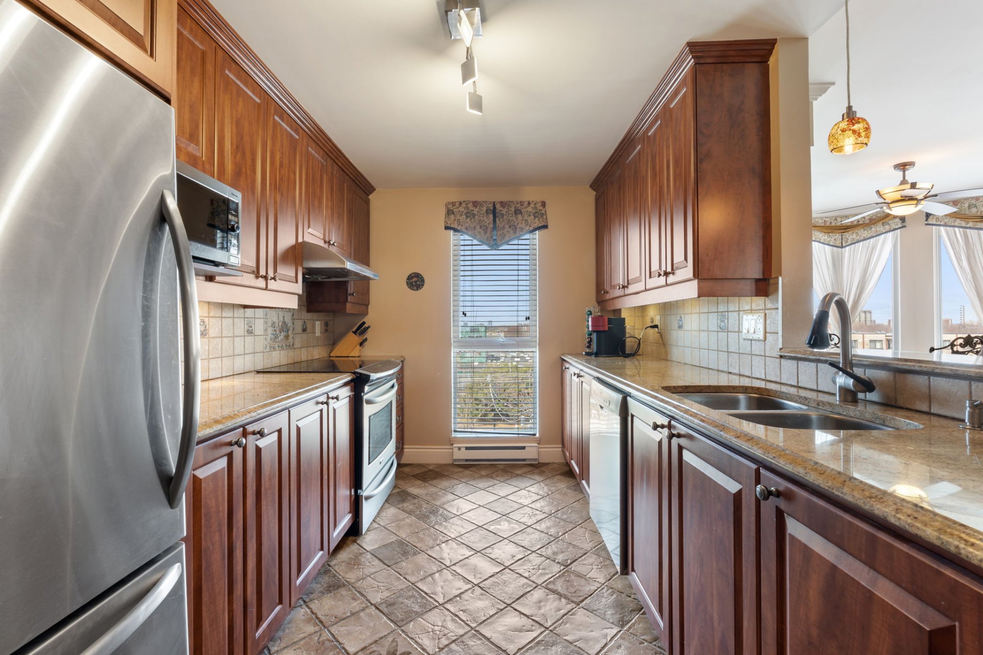 Superbe condo unité de coin à St-Laurent offrant 2 chambres et 2 salles de bains, idéalement situé à proximité de la nouvelle station REM Montpellier. Situé au 5e étage, ce condo lumineux propose de grandes fenêtres avec vue sur le Mont-Royal et des plafonds de 8 pi 7 po. Aire de vie ouverte avec foyer et sortie BBQ au gaz naturel. 1 garage intérieur inclus avec possibilité d'en acquérir un second pour 25,000$. Face à un parc et près d'une clinique médicale. Immeuble bien géré de 7 étages avec 49 copropriétaires et excellente santé financière.